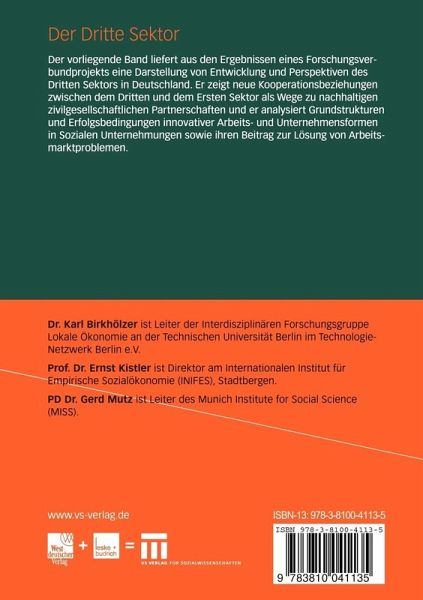 1. Entwicklung und Perspektiven des Dritten Sektors in Deutschland. Bilanz eines Forschungsvorhabens.- 1.1 Der Dritte Sektor als Forschungsgegenstand.- 1.2 Relevanz, Leistungen und Potentiale.- 1.3 Innere Struktur und Organisation.- 1.4 Handlungsempfehlungen und Forschungsbedarf.- 2. Neue Kooperationsbeziehungen zwischen dem Dritten und dem Ersten Sektor - Wege zu nachhaltigen zivilgesellschaftlichen Partnerschaften?.- 2.1 Einführung.- 2.2. Ergebnisse der empirischen Untersuchung.- 2.3 Ausblick: Ein Gewinn für beide Seiten und für die Gesellschaft? Das Spannungsfeld wirtschaftlichen und sozialen Handelns in der Zivilgesellschaft.- 3. Grundstrukturen und Erfolgsbedingungen innovativer Arbeits- und Unternehmensformen in Sozialen Unternehmungen.- 3.1. Die Herausbildung einer innovativen Sozialen Unternehmenskultur.- 3.2. Bestandsaufnahme: Social Entrepreneurship als Bürgerschaftliches Engagement.- 3.3. Soziale Unternehmungen wirtschaften anders.- 4. Arbeit(en) in Betrieben des Dritten Sektors.- 4.1. Arbeit im "Dritten Sektor" als Hoffnungsträger - Zur übergeordneten Problemstellung.- 4.2. Zur Datenbasis der vorliegenden Auswertungen.- 4.3. Beschäftigung und betriebliche Verhaltensweisen im Dritten Sektor nach Ergebnissen des IAB-Betriebspanels 2000.- 4.4. Zusammenfassung und Schlussfolgerungen.- Literatur.- Zu den Autoren.