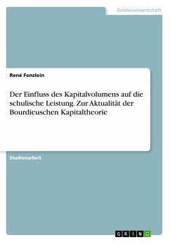 Studienarbeit aus dem Jahr 2016 im Fachbereich Soziologie - Allgemeines und Grundlagen, Note: 2,3, Johannes Gutenberg-Universität Mainz, Sprache: Deutsch, Abstract: In dieser Hausarbeit soll näher untersucht werden, ob Bourdieus Aussagen zur Rolle des Kapitalvolumens in der heutigen Zeit noch zutreffend sind. Haben die Kapitalsorten tatsächlich auch gegenwärtig großen Einfluss auf den Schulerfolg? Wenn ja, inwiefern und in welcher Weise begünstigt soziales Kapital den Bildungserfolg? Könnte der Besitz von sozialem Kapital eine höhere Bedeutung haben als von Bourdieu zunächst angenommen? Zu Beginn dieser Arbeit soll geklärt werden, wie die von Bourdieu benannten Kapitalsorten in Form von kulturellem, ökonomischem und sozialem Kapital zu definieren sind. Anschließend werden im nächsten Kapitel Bourdieus Erkenntnisse in Bezug auf den Schulerfolg aufgeführt und vergleichend dazu im darauffolgenden Kapitel aktuelle Studienergebnisse dargestellt.Gegenüberstellend soll aufgezeigt werden, inwiefern sich die Einflussfaktoren der Kapitalsorten auf den Schulerfolg geändert haben und ob sich Bourdieus Erkenntnisse noch auf das heutige Bildungssystem übertragen lässt. Zum Abschluss werden in einem Fazit die Ergebnisse noch einmal kurz zusammengefasst und mögliche offene Fragen benannt.