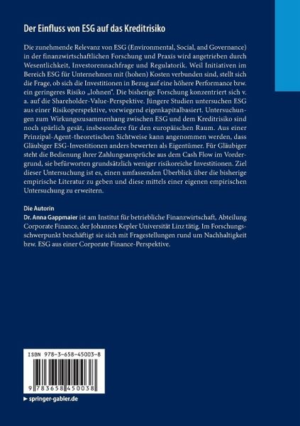 Die zunehmende Relevanz von ESG (Environmental, Social, and Governance) in der finanzwirtschaftlichen Forschung und Praxis wird angetrieben durch Wesentlichkeit, Investorennachfrage und Regulatorik. Weil Initiativen im Bereich ESG für Unternehmen mit (hohen) Kosten verbunden sind, stellt sich die Frage, ob sich die Investitionen in Bezug auf eine höhere Performance bzw. ein geringeres Risiko "lohnen". Die bisherige Forschung konzentriert sich v. a. auf die Shareholder-Value-Perspektive. Jüngere Studien untersuchen ESG aus einer Risikoperspektive, vorwiegend eigenkapitalbasiert. Untersuchungen zum Wirkungszusammenhang zwischen ESG und dem Kreditrisiko sind noch spärlich gesät, insbesondere für den europäischen Raum. Aus einer Prinzipal-Agent-theoretischen Sichtweise kann angenommen werden, dass Gläubiger ESG-Investitionen anders bewerten als Eigentümer. Für Gläubiger steht die Bedienung ihrer Zahlungsansprüche aus dem Cash Flow im Vordergrund, sie befürworten grundsätzlich weniger risikoreiche Investitionen. Ziel dieser Untersuchung ist es, einen umfassenden Überblick über die bisherige empirische Literatur zu geben und diese mittels einer eigenen empirischen Untersuchung zu erweitern.