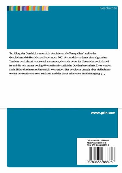 Essay aus dem Jahr 2010 im Fachbereich Geschichte - Didaktik, Note: 2,0, Justus-Liebig-Universität Gießen, Veranstaltung: Einführung in die Geschichtsdidaktik, Sprache: Deutsch, Abstract: "Im Alltag des Geschichtsunterricht dominieren die Textquellen", stellte der Geschichtsdidaktiker Michael Sauer noch 2001 fest und fasste damit eine allgemeine Tendenz der Lehrmittelauswahl zusammen, die auch heute im Unterricht noch aktuell ist und die sich immer noch größtenteils auf schriftliche Quellen beschränkt. Zwar werden auch Bilder durchaus im Unterricht verwendet, dies geschieht oftmals aber vielfach nur wegen der repräsentativen Funktion und der darin erhaltenen Verlebendigung. Eine didaktisch begründete Beschäftigung mit Bildern als eigenständige Quelle und Mittel zur medialen Kompetenzerweiterung der Schüler bleibt aber im Geschichtsunterricht vielfach aus. Um ein umfassendes Geschichtsbild vermitteln zu können, ist aber laut Meinung der Didaktiker auch die Bildanalyse von großer Bedeutung, die sich nicht auf eine Bildbetrachtung im Sinne eines motivierenden Medienwechsels beschränken sollte, sondern ebenso wie die vorwiegend genutzten schriftlichen Quellen Teil des alltäglichen Unterrichts sein muss. Dabei sollen nicht nur die in nahezu jedem Geschichtsbuch auftauchenden Herrscherportraits, sondern im besonderen Maße auch die alltäglichen, als Mentalitätsbilder bezeichneten Fotografien einen immer größer werdenden Platz einnehmen. Im Folgenden werde ich mich nun mit dem Nutzen der Arbeit mit Bildern im Geschichtsunterricht, aber auch mit möglichen auftauchenden Problemen beschäftigen, wobei die Einschränkung des Bildbegriffs eine wichtige Rolle spielt. Anschließend werde ich mich mit den unterschiedlichen Bildarten und insbesondere mit den Alltagsbildern und deren Einsatz im Unterricht beschäftigen. Des Weiteren werde ich das im Unterricht üblicherweise dreistufige Modell aus Beschreibung, Analyse und Interpretation wiedergeben und im Hinblick auf die Arbeit mit Mentalitätsbildern beschreiben, bevor ich abschließend zu einer kurzen Einschätzung der Verwendungsmöglichkeiten solcher Alltagsbilder komme.