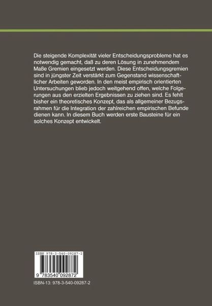Die steigende Komplexitat vieler Entscheidungsprobleme hat dazu gefUhrt, daB in zunehmendem MaBe Entscheidungsgremien zur Losung solcher Probleme eingesetzt werden. Entschei dungsgremien sind in jUngster Zeit zum Gegenstand zahl reicher wissenschaftlicher Arbeiten geworden. Im Vordergrund stehen dabei eindeutig empirische untersuchungen Uber die Einstellung und das Verhalten der Mitglieder sowie Uber den Ablauf und das Ergebnis des Entscheidungsprozesses von Gremien. In Anbetracht der Vielzahl von Arbeiten, die sich mit Entschei dungsgremien befassen, ist es erstaunlich, wie wenig die Organisationstheorie auch heute noch zur Beantwortung der Frage beitragt, wie ein optimales Entscheidungsgremium bestimmt werden kann und wie das Optimum von seinen BestimmungsgroBen abhangt. Man beschrankte sich bisher vor allem auf die Be schreibung und Erklarung der empirisch beobachteten Zusam menhangej welche Folgerungen fUr Delegationsentscheidungen daraus zu ziehen sind, blieb weitgehend offen. Solche SchluB folgerungen sind deshalb schwierig abzuleiten, weil sich die empirischen untersuchungen mit jeweils sehr speziellen Teil zusammenhangen befassen, etwa dem EinfluB der GruppengroBe auf die Motivation der Mitglieder oder auf die Starke des Konformitatsdrucks in der Gruppe. Es fehlt bisher ein theo retisches Konzept, das als allgemeiner Bezugsrahmen fUr die Integration der zahlreichen empirischen Befunde dienen kann. VI In der vorliegenden Arbeit wird versucht, erste Bausteine fUr ein solches Konzept zu entwickeln. 1m Vordergrund der Arbeit steht die entscheidungslogische Be trachtungsweise. Auf der Basis von Ergebnissen empirischer untersuchungen werden Modelle zur Bestimmung der optimalen GroBe und Struktur von Entscheidungsgremien entwickelt. Darauf aufbauend wird auf deduktivem Wege untersucht, wie das Optimum von seinen BestimmungsgroBen abhangt.