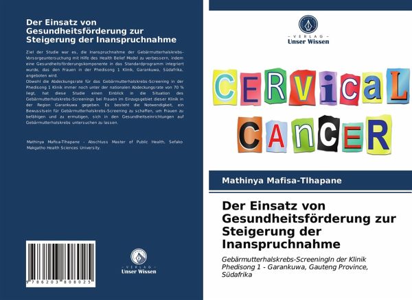 Ziel der Studie war es, die Inanspruchnahme der Gebärmutterhalskrebs-Vorsorgeuntersuchung mit Hilfe des Health Belief Model zu verbessern, indem eine Gesundheitsförderungskomponente in das Standardprogramm integriert wurde, das den Frauen in der Phedisong 1 Klinik, Garankuwa, Südafrika, angeboten wird.Obwohl die Abdeckungsrate für das Gebärmutterhalskrebs-Screening in der Phedisong 1 Klinik immer noch unter der nationalen Abdeckungsrate von 70 % liegt, hat diese Studie einen Einblick in die Situation des Gebärmutterhalskrebs-Screenings bei Frauen im Einzugsgebiet dieser Klinik in der Region Garankuwa gegeben. Es besteht die Notwendigkeit, ein Bewusstsein für Gebärmutterhalskrebs-Screening zu schaffen, um Frauen zu befähigen und zu ermutigen, sich in den Gesundheitseinrichtungen auf Gebärmutterhalskrebs untersuchen zu lassen.