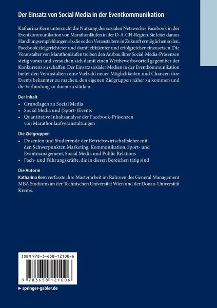KatharinaKern untersucht die Nutzung des sozialen Netzwerkes Facebook in derEventkommunikation von Marathonläufen in der D-A-CH-Region. Sie leitet darausHandlungsempfehlungen ab, die es den Veranstaltern in Zukunft ermöglichensollen, Facebook zielgerichteter und damit effizienter und erfolgreicher einzusetzen. DieVeranstalter von Marathonläufen treiben den Ausbau ihrer Social-Media-Präsenzenstetig voran und versuchen sich damit einen Wettbewerbsvorteil gegenüber derKonkurrenz zu schaffen. Der Einsatz sozialer Medien in der Eventkommunikationbietet den Veranstaltern eine Vielzahl neuer Möglichkeiten und Chancen ihreEvents bekannter zu machen, den eigenen Zielgruppen näher zu kommen und dieVerbindung zu ihnen zu stärken.