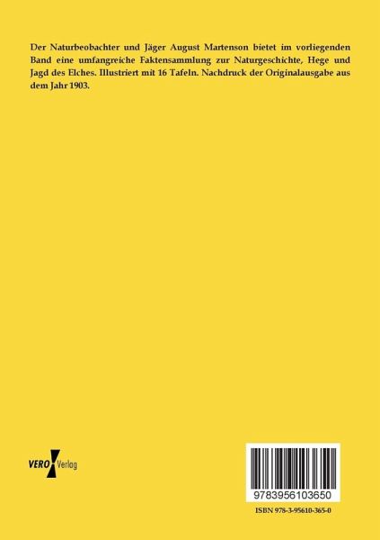 Der Naturbeobachter und Jäger August Martenson bietet im vorliegenden Band eine umfangreiche Faktensammlung zur Naturgeschichte, Hege und Jagd des Elches. Illustriert mit 16 Tafeln. Nachdruck der Originalausgabe aus dem Jahr 1903.