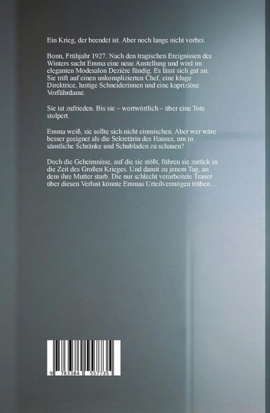 Ein Krieg, der beendet ist. Aber noch lange nicht vorbei.Bonn, Frühjahr 1927. Nach den tragischen Ereignissen des Winters sucht Emma eine neue Anstellung und wird im eleganten Modesalon Dezière fündig. Es lässt sich gut an: Sie trift auf einen unkomplizierten Chef, eine kluge Direktrice, lustige Schneiderinnen und eine kapriziöse Vorführdame.Sie ist zufrieden. Bis sie - wortwörtlich - über eine Tote stolpert.Emma weiß, sie sollte sich nicht einmischen. Aber wer wäre besser geeignet als die Sekretärin des Hauses, um in sämtliche Schränke und Schubladen zu schauen?Doch die Geheimnisse, auf die sie stößt, führen sie zurück in die Zeit des Großen Krieges. Und damit zu jenem Tag, an dem ihre Mutter starb. Die nur schlecht verarbeitete Trauer über diesen Verlust könnte Emmas Urteilvermögen trüben ...