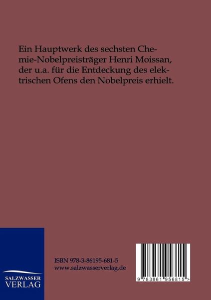 Ein Hauptwerk des sechsten Chemie-Nobelpreisträger Henri Moissan, der u.a. für die Entdeckung des elektrischen Ofens den Nobelpreis erhielt.