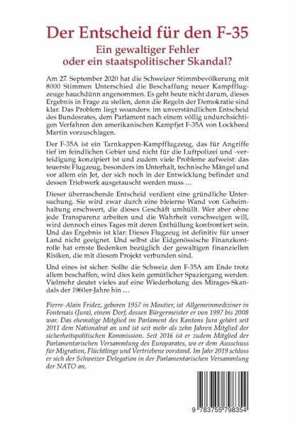 Am 27. September 2020 hat die Schweizer Stimmbevölkerung mit 8000 Stimmen Unterschied die Beschaffung neuer Kampfflugzeuge hauchdünn angenommen. Es geht heute nicht darum, dieses Ergebnis in Frage zu stellen, denn die Regeln der Demokratie sind klar. Das Problem liegt voanders: im unverständlichen Entscheid der Schweizer Regierung, dem Parlament nach einem völlig undurchsichtigen Verfahren den amerikanischen Kampfjet F-35A von Lockheed Martin vorzuschlagen.Der F-35A ist ein Tarnkappen-Kampfflugzeug, das für Angriffe tief im feindlichen Gebiet und nicht für die Luftpolizei und -verteidigung konzipiert ist, die für den Schutz des Schweizer Luftraums im Vordergrund steht. Der F-35A weist zudem viele Probleme auf: das teuerste Flugzeug, besonders im Unterhalt, technische Mängel und vor allem ein Jet, der sich noch in Entwicklung befindet und dessen Triebwerk ausgetauscht werden muss...Der überraschende Entscheid der Schweizer Regierung verdient eine gründliche Untersuchung. Sie wird aber durch eine bleierne Wand der Geheimhaltung erschwert, die dieses Geschäft umhüllt. Wer aber ohne jede Transparenz arbeiten und die Wahrheit verschweigen will, wird dennoch eines Tages mit deren Enthüllung konfrontiert sein. Und das Ergebnis ist klar: Dieses Flugzeug ist definitiv für die Schweiz nicht geeignet. Und selbst die Eidgenössische Finanzkontrolle äusserte ernste Bedenken bezüglich der gewaltigen finanziellen Risiken, die mit diesem Projekt verbunden sind. Und eines ist sicher: Sollte die Schweiz den F-35A am Ende trotz allem beschaffen, wird dies kein gemütlicher Spaziergang werden. Vielmehr deutet vieles auf eine Wiederholung des Mirage-Skandals der 1960er Jahre hin...