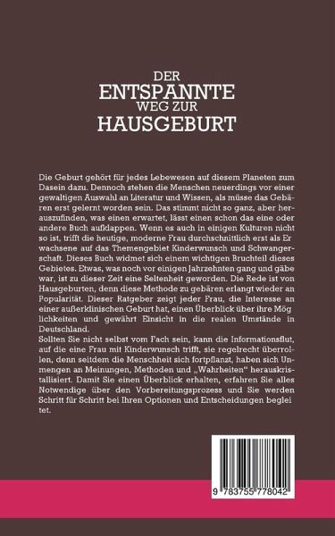 Die Geburt gehört für jedes Lebewesen auf diesem Planeten zum Dasein dazu. Dennoch stehen die Menschen neuerdings vor einer gewaltigen Auswahl an Literatur und Wissen, als müsse das Gebären erst gelernt worden sein. Das stimmt nicht so ganz, aber herauszufinden, was einen erwartet, lässt einen schon das eine oder andere Buch aufklappen. Wenn es auch in einigen Kulturen nicht so ist, trifft die heutige, moderne Frau durchschnittlich erst als Erwachsene auf das Themengebiet Kinderwunsch und Schwangerschaft. Dieses Buch widmet sich einem wichtigen Bruchteil dieses Gebietes. Etwas, was noch vor einigen Jahrzehnten gang und gäbe war, ist zu dieser Zeit eine Seltenheit geworden. Die Rede ist von Hausgeburten, denn diese Methode zu gebären erlangt wieder an Popularität. Dieser Ratgeber zeigt jeder Frau, die Interesse an einer außerklinischen Geburt hat, einen Überblick über ihre Möglichkeiten und gewährt Einsicht in die realen Umstände in Deutschland. Sollten Sie nicht selbst vom Fach sein, kann die Informationsflut, auf die eine Frau mit Kinderwunsch trifft, sie regelrecht überrollen, denn seitdem die Menschheit sich fortpflanzt, haben sich Unmengen an Meinungen, Methoden und ,,Wahrheiten'' herauskristallisiert. Damit Sie einen Überblick erhalten, erfahren Sie alles Notwendige über den Vorbereitungsprozess und Sie werden Schritt für Schritt bei Ihren Optionen und Entscheidungen begleitet.