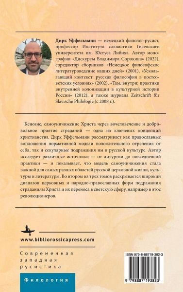 EN This three-volume book investigates the Russian transformations of one of the central concepts of Greek Christology, the self-humiliation or kenosis of Christ. The author applies rhetoric (paradox, metaphor, metonymy) as a means to elucidate mechanisms of theological persuasion and to trace the representations of the humiliated Christ and his imitations in various media from liturgy and iconology to everyday practice and literary fiction. The exploration of post-Christian literature of the 19th and 20th century (N. Chernyshevskii, M. Gor'kii, N. Ostrovskii, Ven. Erofeev, Vl. Sorokin) demonstrates the existence of a kenotic Christology after Christianity. RU This three-volume book investigates the Russian transformations of one of the central concepts of Greek Christology, the self-humiliation or kenosis of Christ. The author applies rhetoric (paradox, metaphor, metonymy) as a means to elucidate mechanisms of theological persuasion and to trace the representations of the humiliated Christ and his imitations in various media from liturgy and iconology to everyday practice and literary fiction. The exploration of post-Christian literature of the 19th and 20th century (N. Chernyshevskii, M. Gor’kii, N. Ostrovskii, Ven. Erofeev, Vl. Sorokin) demonstrates the existence of a kenotic Christology after Christianity.