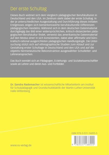 Dieses Buch widmet sich dem Vergleich pädagogischer Berufskulturen in Deutschland und den USA. Im Zentrum steht dabei der erste Schultag. In der je unterschiedlichen Ausgestaltung und Durchführung dieses initialen Ereignisses zeigen sich bemerkenswerte berufskulturelle Differenzen pädagogischen Handelns. Während sich in dem deutschen Datenmaterial durchgängig das Bild einer widersprüchlichen, kritisch-distanzierten pädagogischen Berufskultur findet, verweist das amerikanische Datenmaterial auf den Modus einer in sich konsistenten, dabei aber affirmativ und bürokratisch-rational ausgerichteten pädagogischen Handlungslogik. Die Untersuchung stützt sich auf ethnographische Studien zum Ablauf und zur Gestaltung erster Schultage in Deutschland und den USA und auf die objektiv-hermeneutische Rekonstruktion ausgewählter Schulleiter- und Lehreransprachen.