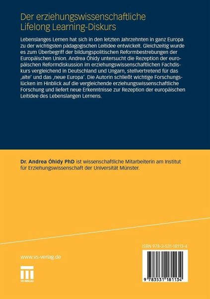Lebenslanges Lernen hat sich in den letzten Jahrzehnten in ganz Europa zu der wichtigsten pädagogischen Leitidee entwickelt. Gleichzeitig wurde es zum Überbegriff der bildungspolitischen Reformbestrebungen der Europäischen Union. Andrea Óhidy untersucht die Rezeption der europäischen Reformdiskussion im erziehungswissenschaftlichen Fachdiskurs vergleichend in Deutschland und Ungarn, stellvertretend für das `alte` und das `neue Europa`. Die Autorin schließt wichtige Forschungslücken im Hinblick auf die vergleichende erziehungswissenschaftliche Forschung und liefert neue Erkenntnisse zur Rezeption der europäischen Leitidee des Lebenslangen Lernens.