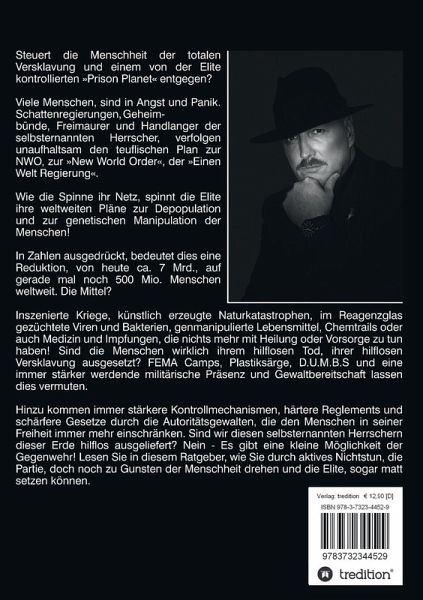 Ein zweiteiliges Arbeitsbuch, bestehend aus 60 Seiten Hintergrundwissen, Arbeitsanweisungen und hilfreichen Informationen, sowie 40 leeren Seiten zum Eintragen der Selbst.- und Lernanalyse, wichtiger Daten und Kontakte. Ihr zukünftiges First Aid Kit bei einem Crash des Systems. Das Thema. Steuert die Menschheit der totalen Versklavung und einem von der Elite kontrollierten "Prison Planet" entgegen? Viele Menschen, sind in Angst und Panik. Schattenregierungen, Geheimbünde, Freimaurer und Handlanger der selbsternannten Herrscher, verfolgen unaufhaltsam den teuflischen Plan zur NWO, zur "New World Order", der "Einen Welt Regierung".