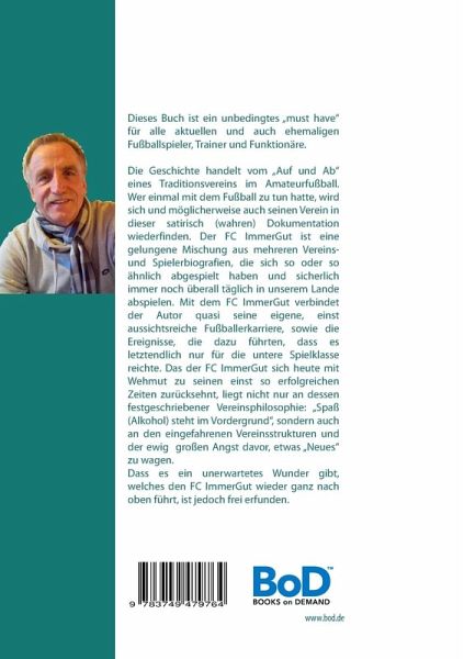 Der FC ImmerGutoder: Wenn der Spaß - Alkohol im Vordergrund steht, ist die Kreisklasse das Maß aller Dinge!Das Buch, Der FC ImmerGut, erzählt eine (Tatsachen)-Geschichte, die sich so oder so ähnlich, tausendmal in Deutschland abgespielt hat und sich auch bis heute immer wieder abspielt. Es basiert auf der Historie von ehemals drei stolzen Vereinen aus Rheinland- Pfalz, dem Großraum Köln und dem Nordwesten Deutschlands, die zu ihren besten Zeiten Bezirks- und Landesligaluft schnuppern durften. Um nicht drei Geschichten gleichzeitig zu erzählen, wurden die erlebten Erfahrungen mit den Erzählungen von ehemaligen Spielern und Vereinsfunktionären zu einem Verein, dem FC ImmerGut zusammengefügt.Der FC ImmerGut steht quasi für alle Vereine, die eine ähnliche Situation durchgemacht haben bzw. gerade durchmachen. Schnell werden sich die Helden von Damals in dem Buch ebenso wiederfinden, wie die jungen Akteure von heute.Das Buch beschreibt desweiteren exakt, wie es um viele Vereine in denunteren Amateurklassen des deutschen Fußballs bestellt ist und warum dem Fußball viele Talente verloren gehen oder erst gar nicht entdeckt werden. Es wird versucht dem Leser zu vermitteln, dass sich bis heute eigentlich nichts geändert hat und wenn nicht ein Wunder geschieht, sich auch sobald nichts ändern wird.