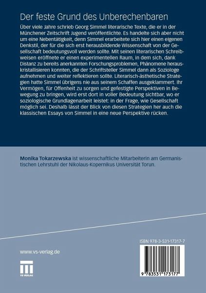 Über viele Jahre schrieb Georg Simmel literarische Texte, die er in der Münchener Zeitschrift Jugend veröffentlichte. Es handelte sich aber nicht um eine Nebentätigkeit, denn Simmel erarbeitete sich hier einen eigenen Denkstil, der für die sich erst herausbildende Wissenschaft von der Gesellschaft bedeutungsvoll werden sollte. Mit seinen literarischen Schreibweisen eröffnete er einen experimentellen Raum, in dem sich, dank Distanz zu bereits anerkannten Forschungsproblemen, Phänomene herauskristallisieren konnten, die der Schriftsteller Simmel dann als Soziologe aufnehmen und weiter reflektieren sollte. Literarisch-ästhetische Strategien hatte Simmel übrigens nie aus seinem Schaffen ausgeklammert. Ihr Vermögen, für Offenheit zu sorgen und gefestigte Perspektiven in Bewegung zu bringen, wird erst dort in voller Bedeutung sichtbar, wo er soziologische Grundlagenarbeit leistet: in der Frage, wie Gesellschaft möglich sei. Deshalb lässt der Blick von diesen Strategien her auch die klassischen Essays von Simmel in eine neue Perspektive rücken.