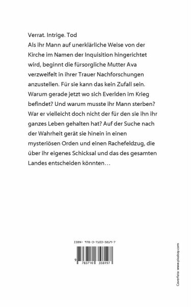 Verrat. Intrige. Tod Als ihr Mann auf unerklärliche Weise von der Kirche im Namen der Inquisition hingerichtet wird, beginnt die fürsorgliche Mutter Ava verzweifelt in ihrer Trauer Nachforschungen anzustellen. Für sie kann das kein Zufall sein. Warum gerade jetzt wo sich Everlden im Krieg befindet? Und warum musste ihr Mann sterben? War er vielleicht doch nicht der für den sie ihn ihr ganzes Leben gehalten hat? Auf der Suche nach der Wahrheit gerät sie hinein in einen mysteriösen Orden und einen Rachefeldzug, die über ihr eigenes Schicksal und das des gesamten Landes entscheiden könnten¿
