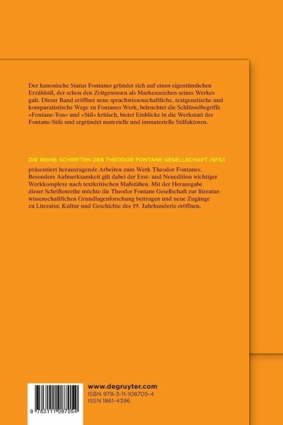 Der kanonische Status Fontanes gründet sich auf einen eigentümlichen Erzählstil, der schon den Zeitgenossen als Markenzeichen seines Werkes galt. Dazu gehörte Fontanes Vorliebe für den humorvoll zugespitzten Satz, seine Lust am Umgangssprachlichen, seine Abneigung gegenüber dem Pathetischen und überspitzt Dramatischen und sein Hang zu einer ironisch-distanzierten Erzählhaltung. Der "Fontane-Ton" hat sich früh als alles umschließende Beschreibung dessen, was der Leser als die Eigenart Fontanes erlebt, durchsetzen können und hat so eine differenzierte Sicht auf Fontanes Stil verhindert. Mit diesem Band eröffnen Herausgeber und Beiträger neue Perspektiven auf Fontanes Stil, die der Einheit dieses Stils und dessen spezifischen Ausprägungen in verschiedenen Gattungen Rechnung tragen. In zwölf Aufsätzen schlagen die Verfasser sprachwissenschaftliche, textgenetische und komparatistische Wege zu Fontanes Werk ein, beleuchten die Schlüsselbegriffe "Fontane-Ton" und "Stil" kritisch, bieten Einblicke in die Werkstatt des Fontane-Stils und ergründen sowohl materielle Stilfaktoren wie Satz und Layout als auch immaterielle Faktoren wie die Erzeugung eines bestimmten Tons durch den Anekdotengebrauch oder in der Erzählhaltung.