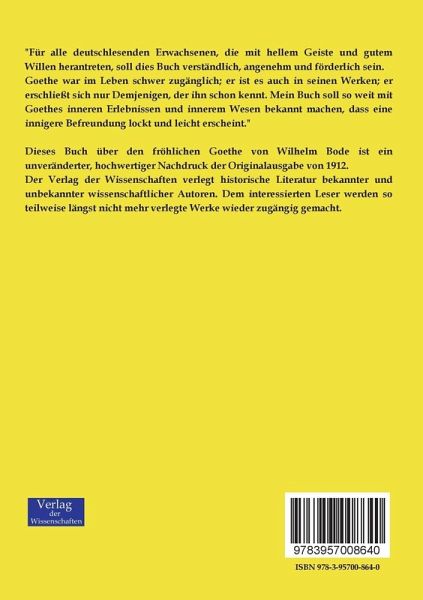 Dieses Buch über den fröhlichen Goethe von Wilhelm Bode ist ein unveränderter, hochwertiger Nachdruck der Originalausgabe von 1912.