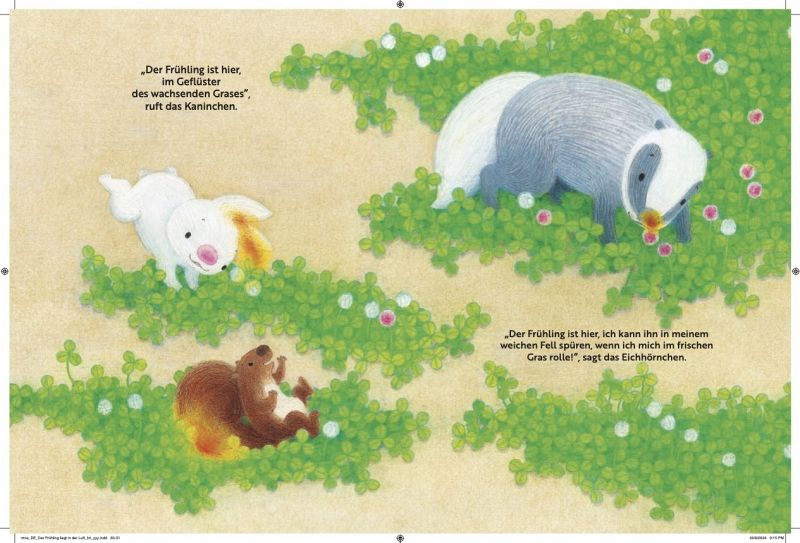 Schnee und Frost bedecken noch den Waldboden, aber der Frühling kündigt sich schon an. Die Luft ist mild - jeder kann es spüren und riechen. Ein Tier nach dem anderen verlässt seinen Unterschlupf. Und endlich ist er da - der bunte, warme, zarte Frühling!- Erzählt auf poetische Weise den Übergang vom Winter zum Frühling - Mit allen Sinnen auf den Spuren des FrühlingsFür Kinder ab 3 Jahre