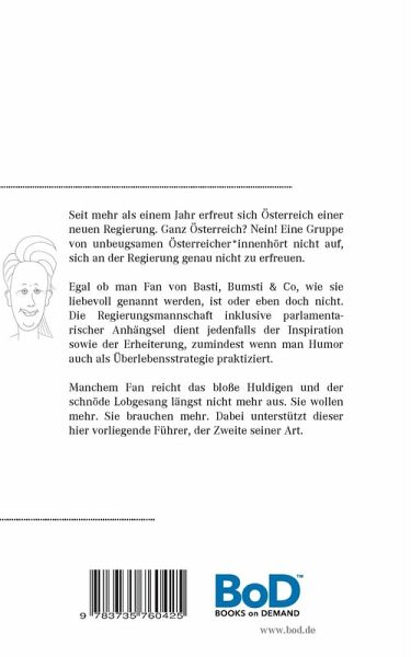 Seit mehr als einem Jahr erfreut sich Österreich einer neuen Regierung. Ganz Österreich? Nein! Eine Gruppe von unbeugsamen Österreicherinnen und Österreichern hört nicht auf, sich an der Regierung nicht zu erfreuen.Egal ob man Fan von Basti, Bumsti & Co, wie sie liebevoll genannt werden, ist oder eben doch nicht. Die Regierungsmannschaft inklusive parlamentarischer Anhängsel dient jedenfalls der Inspiration sowie der Erheiterung, zumindest wenn man Humor auch als Überlebensstrategie praktiziert.Manchem Fan reicht das bloße Huldigen und der schnöde Lobgesang längst nicht mehr aus. Sie wollen mehr. Sie brauchen mehr. Dabei unterstützt dieser hier vorliegende Führer, der erste seiner Art.