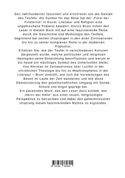 Seit Jahrhunderten fasziniert und erschreckt uns die Gestalt des Teufels: Als Symbol für das Böse hat der "Fürst der Finsternis" in Kunst, Literatur und Religion eine ungebrochene Präsenz bewahrt. Enrico Bruni nimmt den Leser in diesem Buch mit auf eine faszinierende Reise durch die Geschichte und Mythologie des Teufels, beginnend bei seinen Ursprüngen in den alten Zivilisationen bis hin zu seiner komplexen Rolle in der modernen Popkultur.Erfahren Sie, wie der Teufel in verschiedenen Kulturen dargestellt wurde, welche politischen und religiösen Ideologien seine Entwicklung beeinflussten und warum er bis heute ein mächtiges Symbol des Unheilvollen bleibt. Von Ahriman im Zoroastrismus über Luzifer in der christlichen Theologie bis hin zu Mephistopheles in der Literatur - Bruni enthüllt, wie sich die Vorstellungen des Bösen im Laufe der Zeit wandelten und wie diese Dämonisierung den gesellschaftlichen Umgang mit Sünde, Schuld und Angst geprägt hat.Ein packendes Werk, das den Leser dazu einlädt, den "Herrn der Hölle" aus einer neuen, tiefgründigen Perspektive zu betrachten und dabei den geheimnisvollen Ursprung dieses faszinierenden Mythos zu ergründen.