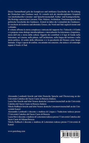 Dieser Sammelband geht der komplexen und intrikaten Geschichte der Beziehung der Deutschen zum Gardasee nach. Er versteht sich als interdisziplinäres Gespräch von interkultureller Literatur- und Sprachwissenschaft, Kultur- und Kunstgeschichte. Die Beiträge untersuchen Literatur, Film, Malerei, Architektur, Tourismussprache und politische Geschichte des Gardasees. Zentral ist dabei die Liminalität des Gardasees: Er erscheint als konkrete und abstrakte Grenze, die Nord und Süd zugleich trennt und verbindet.
