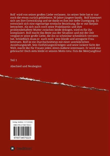 Rolf wird von seiner großen Liebe verlassen. An seiner Seite hat er nur noch die etwas zurück gebliebene, 30 Jahre jüngere Sandy. Rolf kümmert sich um ihre Entwicklung und sie dankt es ihm mit tiefer Zuneigung. Es entwickelt sich eine eigenartige erotische Beziehung, die er mit Skepsis betrachtet. Als sich auch noch seine Praktikantin und ihre problembehaftete Mutter zwischen beide drängen, wird es für ihn kompliziert. Rolf macht das Beste aus der Situation und mit der Zeit vergisst er seine große Liebe, die ihn so scheinbar schmählich verraten hat. Schließlich muss er auch noch eine blinde und arrogante Frau betreuen. Rolf ist ein Durchschnittstyp mit einer unerklärlichen Anziehungskraft. Sein Einfühlungsvermögen und seine lockere Sicht der Welt, macht ihn für Frauen jeden Alters äußerst interessant. Er wird also gebraucht! Dieser erotische Roman erzählt mit subtilem Humor von einem einfachen älteren Mann, der durch seine Sicht der Dinge Frauen bei der Bewätigung ihrer Probleme hilft, ohne sich dessen wirklich bewusst zu sein. Sie danken es ihm auf ihre Weise.Teil 1Abschied und Neubeginn