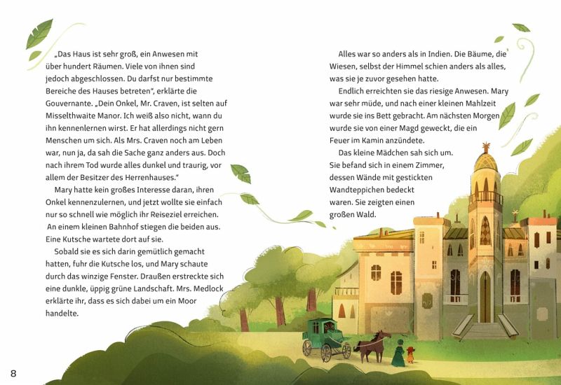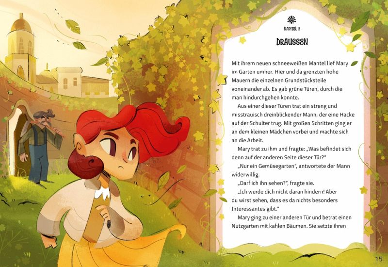 Von Indien nach Yorkshire aufs Land, in ein düsteres Gemäuer: Mary tut sich schwer mit ihrem neuen Leben und der fremden Umgebung. Als sie den Zugang zu dem verborgenen Garten entdeckt, ändert sich alles. Die Geschichte über Kinder, die zusammen etwas erreichen, was die Erwachsenen für unmöglich hielten, gehört seit über hundert Jahren zu den beliebtesten Werken der Kinderliteratur. Domenico Russo fängt in zeitlos-modernen Illustrationen die Magie dieses Buches über Freundschaft, Familie und die Liebe zur Natur ein. Sie inspirieren die Vorstellungskraft der kleinen Leser und man folgt dem Rotkehlchen durch die verborgene Tür in den geheimen Garten!
