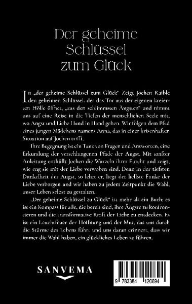 In "der geheime Schlüssel zum Glück" Zeigt Jochen Raible den geheimen Schlüssel, der das Tor aus der eigenen kreierten Hölle öffnet, "aus den schlimmsten Ängsten" und nimmt uns auf eine Reise in die Tiefen der menschlichen Seele mit, wo Angst und Liebe Hand in Hand gehen. Wir folgen dem Pfad eines jungen Mädchens namens Anna, das in einer krisenhaften Situation auf Jochen trifft. Ihre Begegnung ist ein Tanz von Fragen und Antworten, eine Erkundung der verschlungenen Pfade der Angst. Mit sanfter Anleitung enthüllt Jochen die Wurzeln ihrer Furcht und zeigt, wie eng sie mit der Liebe verwoben sind. Denn in der tiefsten Dunkelheit der Angst, so lehrt er, liegt der hellste Funke der Liebe verborgen und wir haben zu jedem Zeitpunkt die Wahl, unser Leben selbst zu gestalten. "Der geheime Schlüssel zu Glück" ist mehr als ein Buch; es ist ein Kompass für alle, die bereit sind, ihre Ängste zu konfrontieren und die transformative Kraft der Liebe zu entdecken. Es ist ein Leuchtfeuer der Hoffnung und der Mut, das uns durch die Stürme des Lebens führt und uns daran erinnert, dass wir immer die Wahl haben, ein glückliches Leben zu führen.
