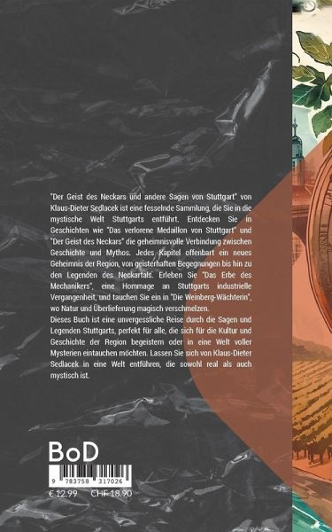 "Der Geist des Neckars und andere Sagen von Stuttgart" von Klaus-Dieter Sedlacek ist eine fesselnde Sammlung, die Sie in die mystische Welt Stuttgarts entführt. Entdecken Sie in Geschichten wie "Das verlorene Medaillon von Stuttgart" und "Der Geist des Neckars" die geheimnisvolle Verbindung zwischen Geschichte und Mythos.Jedes Kapitel offenbart ein neues Geheimnis der Region, von geisterhaften Begegnungen bis hin zu den Legenden des Neckartals. Erleben Sie "Das Erbe des Mechanikers", eine Hommage an Stuttgarts industrielle Vergangenheit, und tauchen Sie ein in "Die Weinberg-Wächterin", wo Natur und Überlieferung magisch verschmelzen.Dieses Buch ist eine unvergessliche Reise durch die Sagen und Legenden Stuttgarts, perfekt für alle, die sich für die Kultur und Geschichte der Region begeistern oder in eine Welt voller Mysterien eintauchen möchten. Lassen Sie sich von Klaus-Dieter Sedlacek in eine Welt entführen, die sowohl real als auch mystisch ist.