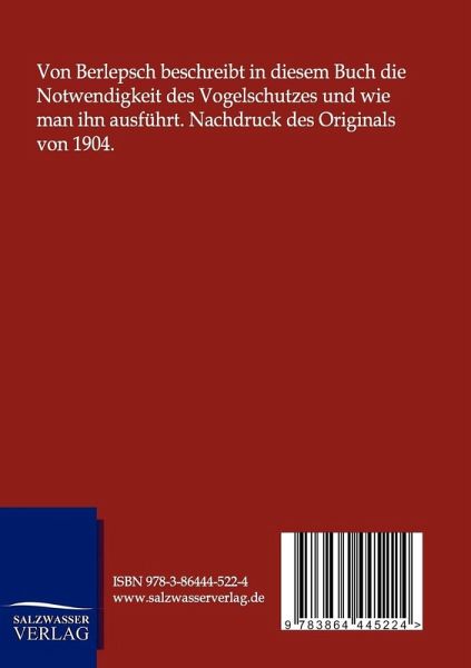 Von Berlepsch beschreibt in diesem Buch die Notwendigkeit des Vogelschutzes und wie man ihn ausführt. Nachdruck des Originals von 1904.