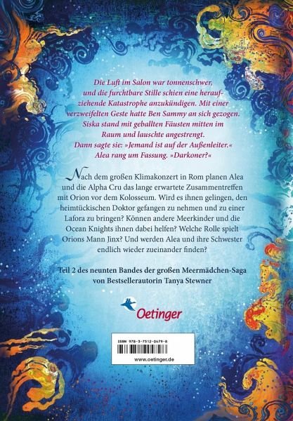 Der fulminante neunte Band - Teil 2 - der Alea-Aquarius-Bestseller-Reihe! Nachdem das große Klimakonzert in Rom zahlreiche Überraschungen birgt, planen Alea und ihre Freunde das lang erwartete Zusammentreffen mit Doktor Orion vor dem Kolosseum. Wird es ihnen gelingen, den heimtückischen Doktor gefangen zu nehmen und zu einer Lafora zu bringen? Können andere Meerkinder und die Ocean Knights ihnen dabei helfen? Welche Rolle spielt Orions Mann Jinx? Und werden Alea und ihre Schwester endlich wieder zueinander finden? Neue Freundschaften, rasante Entwicklungen und heiß ersehnte Enthüllungen lassen Alea-Fans auch in diesem zweiten Teil des neunten Bandes voll auf ihre Kosten kommen.