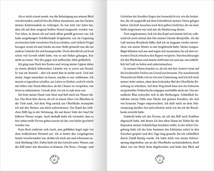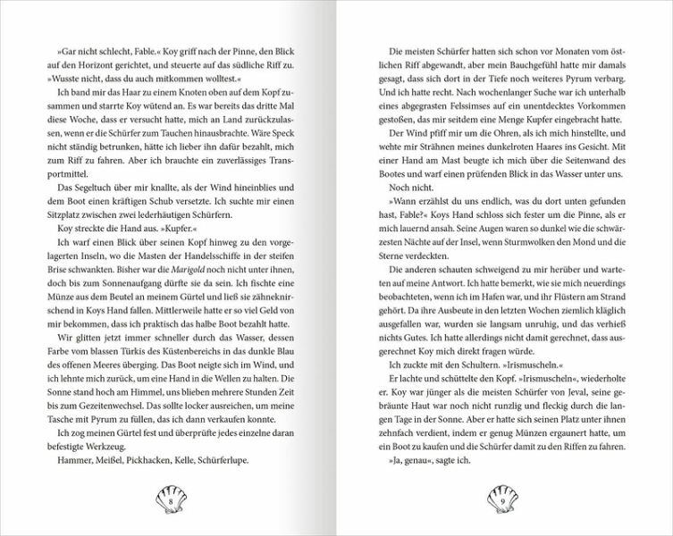 Fable, die von ihrem Vater auf einer abgelegenen Insel ausgesetzt wurde, verdingt sich als Schürferin. Dazu baut sie an den Riffen Pyrum ab, um es zu verkaufen. Ihr Ziel ist es, genug zu verdienen, um endlich Jeval verlassen zu können und ihren rechtmäßigen Platz an der Seite ihres Vaters anzunehmen. Sie schafft es auf der Marigold anzuheuern, ein kleines Handelsschiff, dessen Kapitän mehr verbirgt als offenbart.