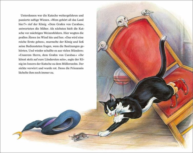Der alte Müller vererbt seinem Erstgeborenen die Mühle, der zweite erhält den Esel. Für den jüngsten Sohn bleibt nur ein unscheinbarer Kater übrig, der für die Mäuse zuständig war. Was soll er mit ihm anfangen? Und der Kater bittet auch noch um ein Paar nagelneue Stiefel, die ihm der Müllers Sohn von seinem letzten Geld anfertigen lässt. Niemals hätte er sich träumen lassen, dass ihn der Kater so reich und berühmt macht, dass sogar die Königstocher auf ihn aufmerksam wird! Der Tier- und Menschenmaler Reinhard Michl hat das berühmte Märchen mit seinen kongenialen Bildern versehen: ein Katzenbuch für Liebhaber!