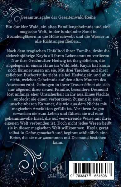 Gesamtausgabe der Gezeitenwald-ReiheEin dunkler Wald, ein altes Familiengeheimnis und eine magische Welt, in der funkelnder Sand in Stundengläsern in die Höhe schwebt und die Wasser in alle Richtungen fließen...Nach dem tragischen Unfalltod ihrer Familie, droht die siebzehnjährige Kayla all ihren Lebensmut zu verlieren. Nur ihre Großmutter Hedwig ist ihr geblieben, die abgelegen in einem Haus im Wald lebt. Kayla hat kaum noch Erinnerungen an sie. Mit drei Taschen und ihrer geliebten Büchertruhe zieht sie bei Hedwig ein und ahnt nicht, welches Geheimnis auf den alten Mauern des Anwesens ruht. Gefangen in ihrer Trauer öffnet sie sich nur zögernd ihrer neuen Familie, besonders Desmond löst anfangs eher Unsicherheit in ihr aus. Eines Nachts entdeckt sie einen verborgenen Zugang in einer unscheinbaren Kammer, die wie aus dem Nichts mit magischen Artefakten gefüllt ist. Vor ihren Augen erwachen sie zum Leben und führen sie auf eine geheimnisvolle Insel, die auf verwirrende Weise mit ihrer eigenen Welt verbunden ist. Doch nicht jedes Wesen heißt sie in dieser magischen Welt willkommen. Kayla gerät selbst in Gefangenschaft und beginnt schließlich eine Reise, die sie nur zusammen mit Desmond bestehen kann.