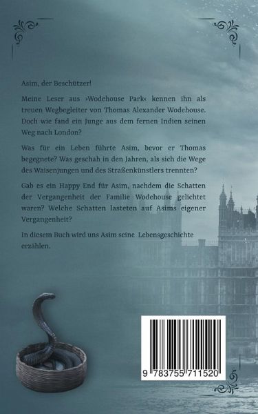 Asim, der Beschützer!Meine Leser aus Wodehouse Park kennen ihn als treuen Wegbegleiter von Thomas Alexander Wodehouse. Doch wie fand ein Junge aus dem fernen Indien seinen Weg nach London? Was für ein Leben führte Asim, bevor er Thomas begegnete? Was geschah in den Jahren, als sich die Wege des Waisenjungen und des Straßenkünstlers trennten?Gab es ein Happy End für Asim, nachdem die Schatten der Vergangenheit der Familie Wodehouse gelichtet waren? Welche Schatten lasteten auf Asims eigener Vergangenheit? In diesem Buch wird uns Asim seine Lebensgeschichte erzählen.