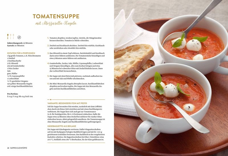 Dies ist eines jener Kochbücher, die alles abdecken. Wer keine Kochbuchsammlung haben möchte, ist mit diesem Buch, das die Kapitel Salate & Vorspeisen; Suppen & Eintöpfe; Gemüsegerichte; Fleisch & Geflügel; Fisch & Meeresfrüchte; Nudeln, Reis & Kartoffeln; Süßspeisen & Desserts, Einmachen & Einkochen abdeckt, schon mal sehr gut ausgestattet. Die Lust auf mehr Bücher kommt danach ganz von allein!