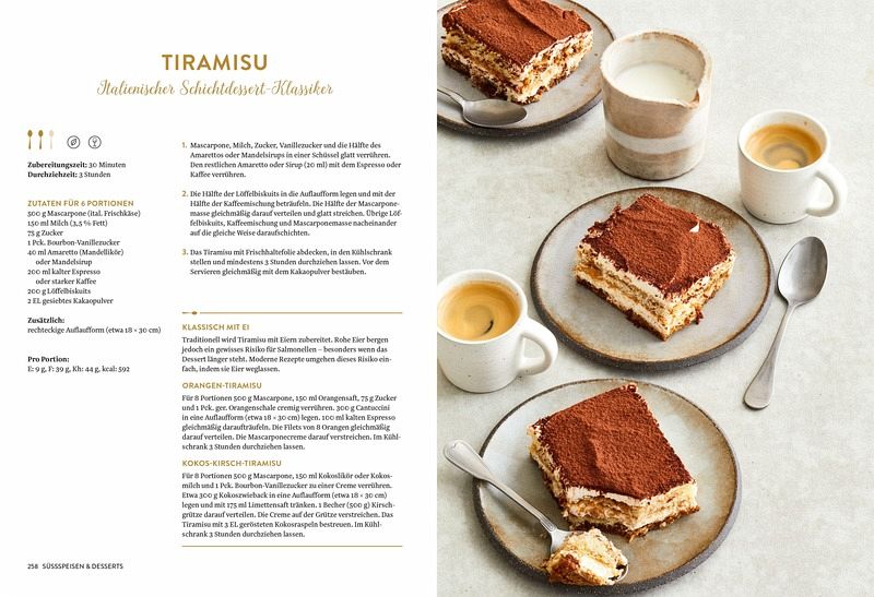 Dies ist eines jener Kochbücher, die alles abdecken. Wer keine Kochbuchsammlung haben möchte, ist mit diesem Buch, das die Kapitel Salate & Vorspeisen; Suppen & Eintöpfe; Gemüsegerichte; Fleisch & Geflügel; Fisch & Meeresfrüchte; Nudeln, Reis & Kartoffeln; Süßspeisen & Desserts,