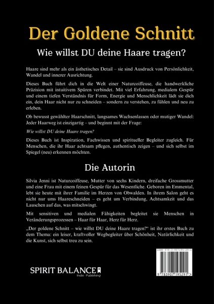 Silvia Jenni ist eine Frau mit wachem Herzen, feinfühligem Blick und tiefem Vertrauen in das, was zwischen den Zeilen geschieht. Geboren im malerischen Emmental in der Schweiz, erkannte sie schon früh, dass Freiheit im Einfachen wächst. Sie ist verheiratet, Mutter von drei Töchtern, drei Söhnen sowie Grossmutter von drei Enkelkindern und lebt im schönen Obwalden. Ihre Familie ist ihre Kraftquelle und ein lebendiger Teil ihres Weges. Liebevoll nennen ihre Enkel sie Mola. Als ausgebildete Damen- und Herrencoiffeuse führt Silvia einen eigenen Naturhaarsalon, in dem sie weit mehr tut als nur Haare zu schneiden. Mit sensitiven und medialen Fähigkeiten spürt sie dem nach, was sich im Haar zeigt: Erinnerungen, Emotionen, Wandlungsprozesse. Jeder Besuch bei ihr ist eine Reise zu sich selbst - getragen von Achtsamkeit, Berührung und echter Verbindung. Silvia glaubt daran, dass Haare Geschichten tragen - und dass jeder Mensch das Potenzial in sich trägt, sich neu zu entfalten. Sie begleitet Menschen mit Hingabe, Präsenz und einem feinen Gespür für das Wesentliche. Mit ihrem Buch "Der goldene Schnitt - wie willst DU deine Haare tragen?" teilt sie erstmals ihren ganz persönlichen Weg: ehrlich, poetisch, tief. Es ist eine Einladung, sich selbst neu zu begegnen - im Spiegel der Natur, im Wandel des Lebens und in der Stille zwischen den Worten.