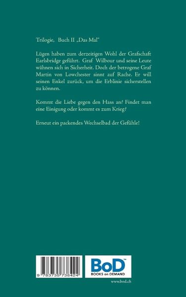 Trilogie Buch II "Das Mal"Lügen haben zum derzeitigen Wohl der Grafschaft Earlsbridge geführt. Graf Wilbour und seine Leute wähnen sich in Sicherheit. Doch der betrogene Graf Martin von Lowchester sinnt auf Rache. Er will seinen Enkel zurück, um die Erblinie sicherstellen zu können. Kommt die Liebe gegen den Hass an? Findet man eine Einigung oder kommt es zum Krieg?Erneut ein packendes Wechselbad der Gefühle!