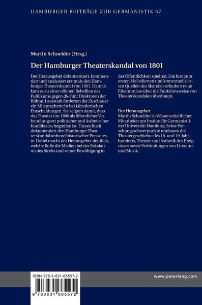 Der Herausgeber dokumentiert, kommentiert und analysiert erstmals den Hamburger Theaterskandal von 1801. Damals kam es zu einer offenen Rebellion des Publikums gegen die fünf Direktoren der Bühne. Lautstark forderten die Zuschauer ein Mitspracherecht bei künstlerischen Entscheidungen. Sie zeigten damit, dass das Theater um 1800 als öffentlicher Verhandlungsort politischer und ästhetischer Konflikte zu begreifen ist. Dieses Buch dokumentiert den Hamburger Theaterskandal anhand historischer Pressetexte. Dabei macht der Herausgeber deutlich, welche Rolle die Medien bei der Eskalation des Streits und seiner Bewältigung in der Öffentlichkeit spielten. Die hier zum ersten Mal edierten und kontextualisierten Quellen des Skandals erlauben neue Erkenntnisse über die Funktionsweise von Theaterskandalen überhaupt.