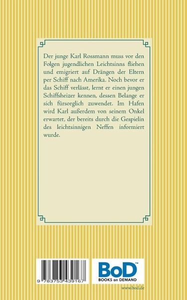 Der junge Karl Rossmann muss vor den Folgen jugendlichen Leichtsinns fliehen und emigriert auf Drängen der Eltern per Schiff nach Amerika. Noch bevor er das Schiff verlässt, lernt er einen jungen Schiffsheizer kennen, dessen Belange er sich fürsorglich zuwendet. Im Hafen wird Karl außerdem von seinem Onkel erwartet, der bereits durch die Gespielin des leichtsinnigen Neffen informiert wurde.