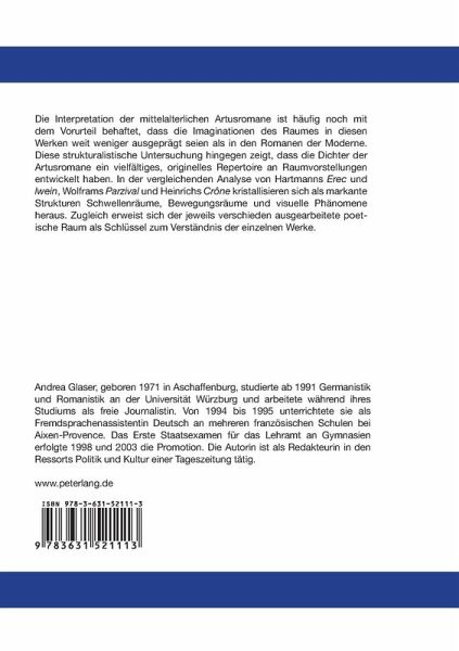 Die Interpretation der mittelalterlichen Artusromane ist häufig noch mit dem Vorurteil behaftet, dass die Imaginationen des Raumes in diesen Werken weit weniger ausgeprägt seien als in den Romanen der Moderne. Diese strukturalistische Untersuchung hingegen zeigt, dass die Dichter der Artusromane ein vielfältiges, originelles Repertoire an Raumvorstellungen entwickelt haben. In der vergleichenden Analyse von Hartmanns Erec und Iwein , Wolframs Parzival und Heinrichs Crône kristallisieren sich als markante Strukturen Schwellenräume, Bewegungsräume und visuelle Phänomene heraus. Zugleich erweist sich der jeweils verschieden ausgearbeitete poetische Raum als Schlüssel zum Verständnis der einzelnen Werke.