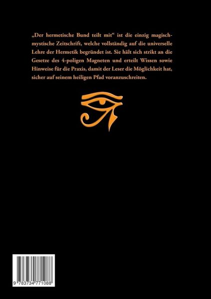"Der hermetische Bund teilt mit" ist die einzig magisch-mystische Zeitschrift, welche vollständig auf die universelle Lehre der Hermetik begründet ist. Sie hält sich strikt an die Gesetze des 4-poligen Magneten und erteilt Wissen sowie Hinweise für die Praxis, damit der Leser die Möglichkeit hat, sicher auf seinem heiligen Pfad voranzuschreiten.