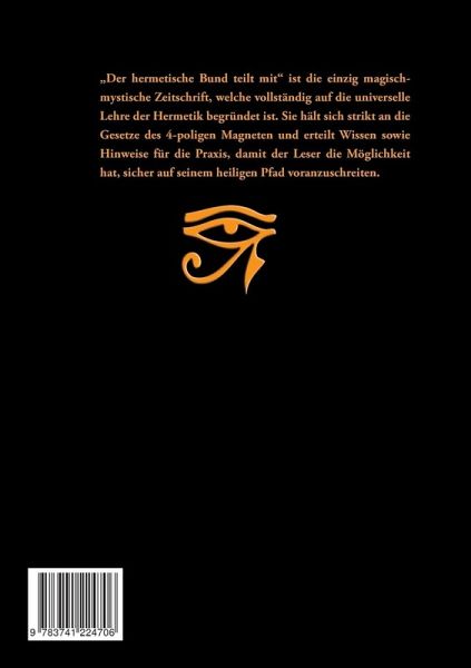 "Der hermetische Bund teilt mit" ist die einzig magisch-mystische Zeitschrift, welche vollständig auf die universelle Lehre der Hermetik begründet ist. Sie hält sich strikt an die Gesetze des 4-poligen Magneten und erteilt Wissen sowie Hinweise für die Praxis, damit der Leser die Möglichkeit hat, sicher auf seinem heiligen Pfad voranzuschreiten.Inhaltsangabe:1. Die Stimme der Stille2. Sommer-Sonnwend-Feuerzauber3. Ekstase - Teil VIII4. Khan - Hermetische Aufsätze5. Indische Hypnose6. Drei Vorträge über die Bhagavat Gita - II