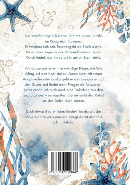 Der Herr der Meere ist eine spannende Abenteuer-Reihe, die den Leser in die Welt der Meeresvölker und an versteckte Orte entführt.Der zwölfjährige Suli Neron lebt mit seiner Familie im Königreich Faranon.Er verdient sich sein Taschengeld als Stallbursche. Bis er eines Tages in der Verbandskammer einen Dolch findet, der ihn sofort in seinen Bann zieht. Von da an passieren merkwürdige Dinge, die Sulis Alltag auf den Kopf stellen. Gemeinsam mit seiner Adoptivschwester Bonka geht er den Ereignissen auf den Grund und findet mehr Fragen als Antworten.Dann erhält Suli auch noch eine Einladung aus dem Eispalast des Meeresgottes, die vielleicht das Rätsel um den Dolch lösen könnte.Doch etwas Bedrohliches hindert ihn daran, das Königreich zu verlassen und bringt damit nicht nur Suli in Gefahr.