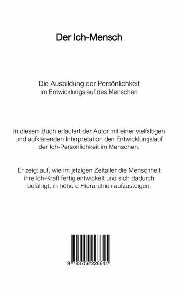 Die Ausbildung der Persönlichkeit im Entwicklungslauf des Menschen.In diesem Buch erläutert der Autor mit einer vielfältigen und aufklärenden Interpretation den Entwicklungslauf der Ich-Persönlichkeit im Menschen.Er zeigt auf, wie im jetzigen Zeitalter die Menschheit ihre Ich-Kraft fertig entwickelt und sich dadurch befähigt, in höhere Hierarchien aufzusteigen.