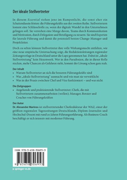 In diesem Essential stehen jene im Rampenlicht, die sonst eher ein Schattendasein fristen: die Führungskräfte aus der zweiten Reihe. Stellvertretern kommt eine Schlüsselrolle zu, wenn der digitale Wandel in den Unternehmen gelingen soll. Sie verstehen eine Menge davon, Teams durch Kommunikation und Motivation, durch Delegation und Beteiligung zu steuern. Sie sind Experten für laterale Führung und damit die potenziell besten Change-Manager und Projektleiter.