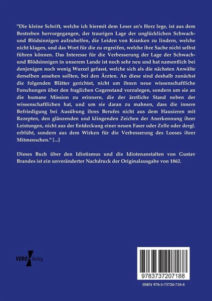 Dieses Buch über den Idiotismus und die Idiotenanstalten von Gustav Brandes ist ein unveränderter Nachdruck der Originalausgabe von 1862.