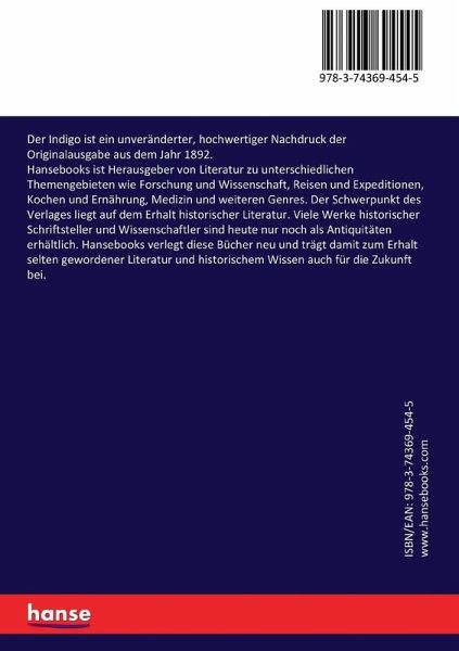 Der Indigo ist ein unveränderter, hochwertiger Nachdruck der Originalausgabe aus dem Jahr 1892. Hansebooks ist Herausgeber von Literatur zu unterschiedlichen Themengebieten wie Forschung und Wissenschaft, Reisen und Expeditionen, Kochen und Ernährung, Medizin und weiteren Genres. Der Schwerpunkt des Verlages liegt auf dem Erhalt historischer Literatur. Viele Werke historischer Schriftsteller und Wissenschaftler sind heute nur noch als Antiquitäten erhältlich. Hansebooks verlegt diese Bücher neu und trägt damit zum Erhalt selten gewordener Literatur und historischem Wissen auch für die Zukunft bei.