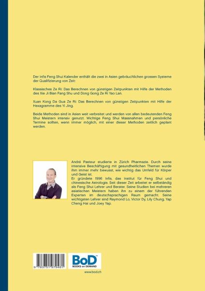 Nutzen Sie die Rhythmen der kosmischen Energien! Würden Sie ein Picknick veranstalten, wenn im Wetterbericht Sturm und Regen angesagt sind? Wahrscheinlich nicht. Genauso sollten Sie wichtige Termine nicht auf Zeiten legen, in denen die himmlischen Energien nicht günstig sind. Warten Sie auf gutes Wetter. Wenn die kosmischen Einflüsse harmonisch sind, gelingen alle Unternehmungen viel leichter.Der Infis Feng Shui Kalender enthält die zwei in Asien gebräuchlichen grossen Systeme der Qualifizierung von Zeit:Klassisches Ze Ri: Das Berechnen von günstigen Zeitpunkten mit Hilfe der Methoden des Xie Ji Bian Fang Shu und Dong Gong Ze Ri Yao Lan.Xuan Kong Da Gua Ze Ri: Das Berechnen von günstigen Zeitpunkten mit Hilfe der Hexagramme des Yi Jing.Beide Methoden sind in Asien weit verbreitet und werden von allen bedeutenden Feng Shui Meistern intensiv genutzt. Wichtige Feng Shui Massnahmen und persönliche Termine sollten, wenn immer möglich, mit einer dieser Methoden zeitlich geplant werden.